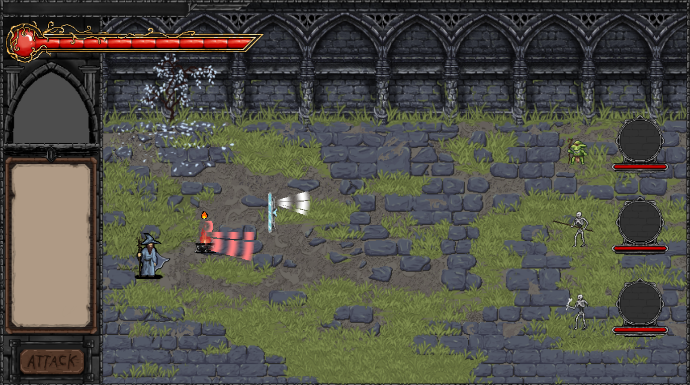 Step into a challenging, turn-based defense game where you play as a stationary Mage defending a battle chamber against encroaching Skeletons and Goblins.